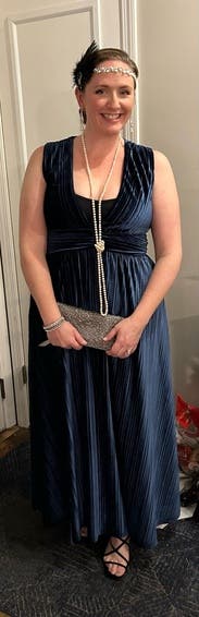 I love the shade of blue and the soft, cozy fabric. This is such a comfortable dress, as fancy dresses go! Ultimately, I didn't wear this one as it was a bit too much boob for the audience, but if you've got a smaller chest (or if you aren't, but you want to give your date a heart attack 😄) it's a wonderful dress!