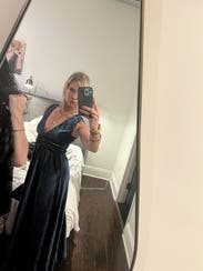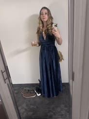 I love this dress and the beautiful blue velvet color. But I was constantly making sure my breasts weren’t falling out of the dress.