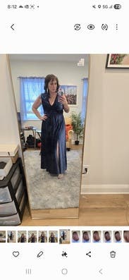 This dress was beautiful and comfortable. I loved the length and the slit. Definitely revealing in the chest area.