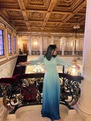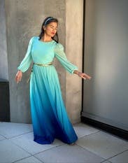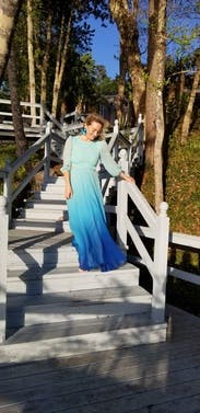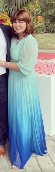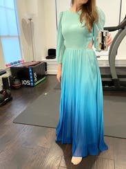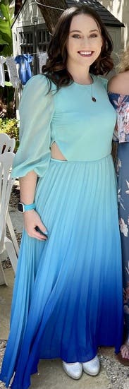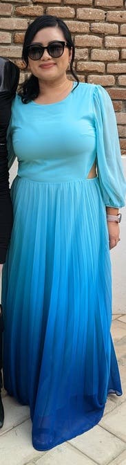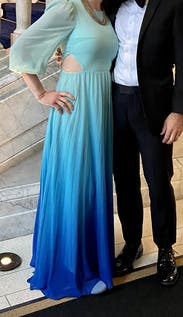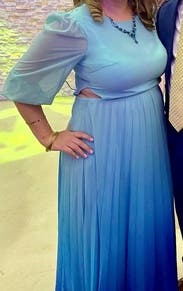 I wore this to a formal Indian sangeet celebration ahead of our friends' wedding, and it was a great substitute given I didn't have any Indian formalwear. The fabric is light, flowy, and comfortable, and the blue ombre is simply stunning! The color alone is to die for. My tummy is a bit of a problem area, but the cutouts are small enough that I didn't feel uncomfortable. I will say that the fit may have been a bit smoother with a smaller bust size, but overall I felt so pretty and got a number of compliments!