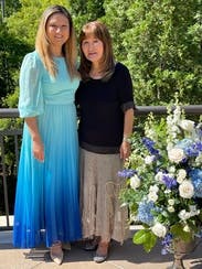 This dress is stunning. The blues are so bright and crisp, and the flow of the dress is lovely. I wore it with hot pink earrings and it only made the colors that much better. It seems to run true to size - I'm 155lbs and 5'6" and the 8 was a perfect fit. I also have a large bust (34DDD) and broad shoulders, but because the sleeves were sheer with some extra fabric, the dress did not pull around my shoulders or chest as many clothes do. The length is not *too* cumbersome. I'm 5'6" and wore 2.5" heels; the dress didn't touch the ground but I did have to be very mindful to hold the bottom when going up and down stairs. I'm not being hyperbolic when I say I was complimented by nearly everyone at the wedding. This dress was the winner.