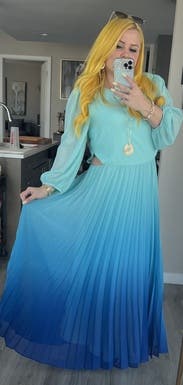 Love everything about this dress. It's so soft and flowy, the material looks expensive, it's got just enough sexy with the cutouts, it's comfortable, and it's just this beautiful ombré like the sea flowing when you walk.