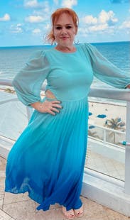 I thought I would be insecure about the side cutouts but not at all. They accentuated my smaller waist. The ombre is beautiful. It was breezy and beautiful and the perfect gala dress for a breezy Oklahoma Spring evening. If you are pale and a redhead this dress is a STUNNER.