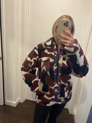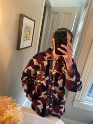 Tons of compliments on the print for this Sherpa jacket. But a few downsides for the wearer: Pockets have no zippers. Inside is not soft- it’s a completely different material like nylon. This made it feel less warm to me because it wasn’t soft and fuzzy on my skin. Liked it but preferred other RTR sherpa jackets better like the scotch and soda one.