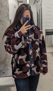 Thought it would be like a big fun patterned Patagonia fleece but one side of it is like a raincoat material and one side is fleece. I wanted to have the fleece side against my body but I didn’t like the raincoat side being the side that faced out so this was a miss for me