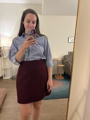 Loved the quality of the shirt. The fit on the back was a little weird…it had a pleat but then the hem was tighter so it made it balloon out in the back in a way that I didn’t love. I don’t know if that makes sense lol. But it didn’t lay how I thought it would