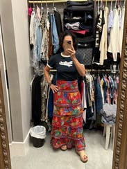 I loved this cute t-shirt, but it just barely covered my belly. If you don't mind a tiny slice of belly showing, it's perfect!