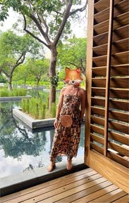 Wore this with flats to a cookout with some friends. Perfect length for me, and the print really stood out!