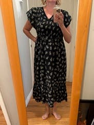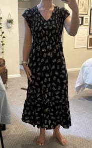 I liked this dress, though I wish the V was a little deeper. I appreciate that Rails midi/maxi dresses don't have too much fabric in the skirt that can make for a puffy look.