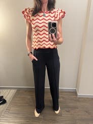 Fun, comfy top and wore it a bunch. I am always looking for fun tops on RTR and have a hard time finding ones I like that are not super cropped. This top was a little short but I wore with the Lee’s barrel jeans which are higher rise than I usually wear.