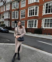 I rented a medium and a large in this. I have a small waist but a little bit more ample in the hips. I really needed a size in between the large and the medium. But both of them worked well. I think I may have preferred the look that the large gave me over the medium, even though the medium fit better in the waist, the medium gave me more of a midi dress fit, and I don't think it was quite as flattering with the material. It travels really well I got loads of compliments, wearing both the medium and the large. Wore them with crisp white Laura file court shoes wore them with black heels wore them with a winner. White suede heel definitely keeps you nice and warm. Considered buying it. I did buy the sweater that goes with it.