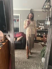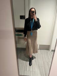 This sweater skirt is so soft and cozy and fabulous and a perfect Fall color. The sweater was equally comfy and well made. So many compliments. I will definitely rent this outfit together again!