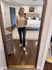 I loved this sweater. It was the perfect weight for fall and high quality. I liked the flecks of color in the sweater, making it an elevated basic. Will consider buying it!
