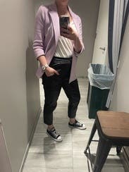These fit okay, but I honestly had the hardest time styling them in a way that didn’t make my stomach pooch look oh so prominent. They were weird to sit in (I stuck to every chair!), rode up my legs so I was constantly pushing them back down, and made a weird Velcro farting noise every time I crossed or un-crossed my legs. Maybe I’m just not a leather pants girl.