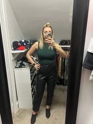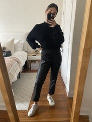 I loved these leather pants. Dresses down with a sweatshirt or perfect for a night out with a pair of black boots