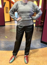 These aren’t my favorite pair of leather jogger/pants, but they work. They are a bit awkward in fit. Inseam is long in front, but makes your bum look cute in the back.