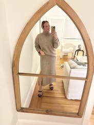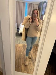 This Rails top is the perfect beige color. The texture is beautiful and gives it that cozy, elevated feel. It is a bit scratchy, but wearing an undershirt makes it totally fine. I do wish the collar was either a full turtleneck or a crew since the mini mock neck felt a little in-between, but it still looked great styled. It’s warm and ideal for the cooler side of the season
