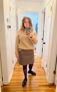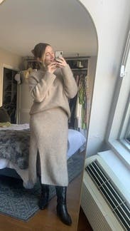 This sweater is so soft and cozy and fabulous and a perfect Fall color. The skirt was equally comfy and well made. So many compliments. I will definitely rent this outfit together again!