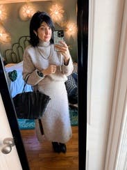 Very cute sweater but a little thick for Texas winter! The neck of the turtleneck is also pretty snug
