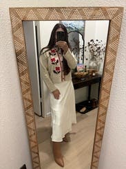 Arrived brand new and in perfect condition. Cute in a Scandinavian winter kind of way. Good fit and kept me warm, though wasn’t blown away by the look. Wore a long sleeve so it wouldn’t be itchy.