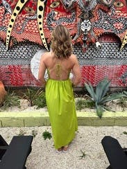 Such a flattering dress and perfect for a beachy wedding welcome party! It was a thin material so perfect for a hot outdoorsy party. Also love the open back and not having to wear a bra 🤣