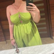 So I LOVED this dress and the back is sexy and open - so great for a vacation too (I wore for a bachelorette in mexico). I regret not figuring out some type of sticky bra situation or other bc in pics I can see it was too much 😂 but loved this dress still!!