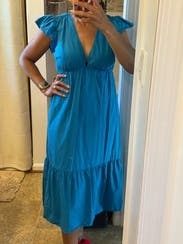 I really loved this dress for the height of summer. If you are looking for something super cute flowing and also fitting at the top, this is your dress. The color was also great.