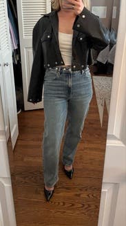 I like the studded detail on these jeans, also the length is PERFECT for tall girlies! These hit right at my ankle bone. Size is TTS, I usually take a 28 but sized up to a 29 and they are a little loose but still work.