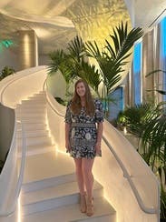 I wore this for work to shoot some social media videos. It was super comfortable and flattering. Skirt was on the shorter side, but still appropriate.