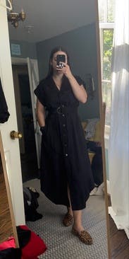 I LOVED this dress! I bought it for my January trip to CDMX and wore it casually with white tennis shoes and then dressed it up with heels for a dinner. Super comfy and light -perfect for the warm weather. Cinched belt is super flattering. Would 1000% rent this again!