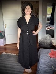 This was the easiest dress to throw on and still look polished and professional -- the belted waist makes it very flattering. The material is lightweight and very breathable.