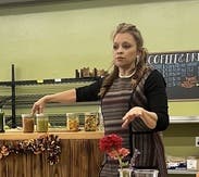 My reviews are focused for short, pear shaped women. This is flattering. It is a little bit more of a knit than tweed. It is brown but gold thread makes it more special. It is a little big around the arm holes. I wore a jean jacket