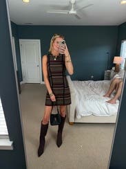 loved this with high boots and tights and a long sleeve turtleneck underneath