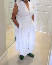 White (100% Cotton). Casual dresses. V-neck. Sleeveless. Front zipper closure. Shoulder to hemline length: 42". Imported.