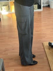 I wore these pants multiple times. Great way to jazz up boring trousers with the cargo pocket and slight pinstripe. They were perfect length with a low heel.