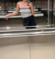 Cute cool bandeau top. Can pair it with jeans or a cute skirt to mix up the look. High waisted gives it a dressier feel, while you can wear lower waisted to show some skin for a fun and sexier look. Love this top!!