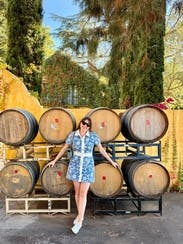 This dress is perfect for wine tasting or brunch, and so easy to wear. It runs true to size, but the hem is on the shorter side, so I paired it with shorts underneath for peace of mind. It shows off your legs beautifully and feels effortlessly cute!
