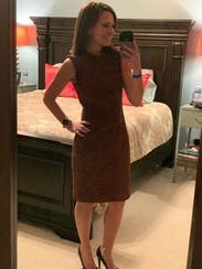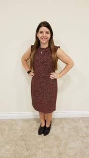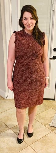 This was a nice classy dress for work. Loved the color and the texture, the light ruffle around the neck and arms was so cute. This wasn't a super clingy and form-fitting dress like many are, it is a nice thick material and I appreciated the tad more relaxed fit while still looking chic and fitted.