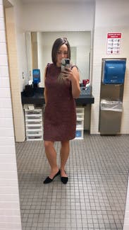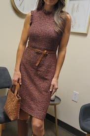 Classy work dress. There is a beautiful trim around the arm holes and neckline. It's tweed. Would definitely rent again!