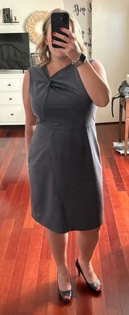 Most flattering work dress, and neckline adds some fun to otherwise simple color and cut. Had just the right amount of stretch to fit your body (esp if you are more hourglass) without losing its shape. Absolutely loved, will rent again.