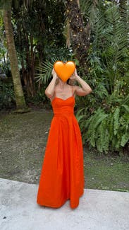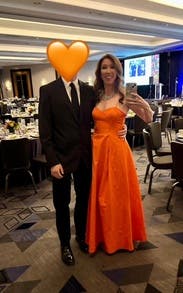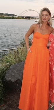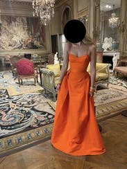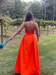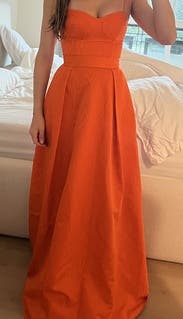 This tangerine corset top gown by Rebecca Vallance is the springtime stunner you won't want to return after that special event.