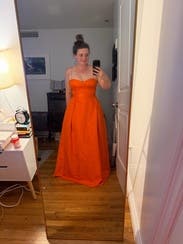 Never received more compliments on a dress. Was hesitant that it was too bright but I absolutely loved it. Definitely sized up based on reviews and it fit perfectly. At least 3 gals have rented this after me!
