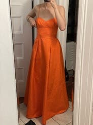 Orange twill (100% Polyester). A-line. Sleeveless. Sweetheart. Back zipper closure. See size and fit notes for length measurements. Imported.