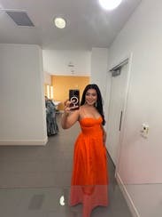 Beautiful dress, great color, definitely unique and looks good with a tan. I usually wear a 4/6 and I wore a 12 in this. 10 fit but super tight around my rib cage. I’m tall so the length was great for me.