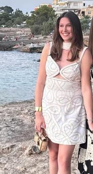 Wore this out to a fancy dinner in St Tropez with my bestie - it is a showstopper if you can squeeze into it. It is tight for anyone with a bigger chest… but made it work. Loved the crochet vibes