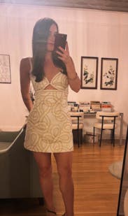 I loved this dress! I wanted to buy it but it’s not budget friendly. I wore for my birthday celebration at a resort / masquerade party. Perfect for Florida weather. It’s made for pro-cleavage proud women ;) but it’s classy, well made hugging your curves and totally gives this goddess vibes. Perfect for a party, Cruise or formal day event. Rent it! I followed reviews from an RtR user with same body type and went with the label size 12 I think equivalent to sz 8 (normally a 6 so I sized up) 36C muscular built 26 waist. 155 lbs 5,5