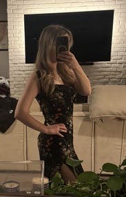 So cute, doesn’t even need a bra. Adjustable straps. Slit is cute. Great material. Doesn’t run too small (like some Ref clothes do). I might buy!!