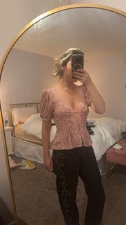 Such a pretty top! I got multiple compliments wearing it. The only thing is that it's a bit revealing with the low neckline and the gaps between the buttons. Would be perfect for a date or more casual setting though!