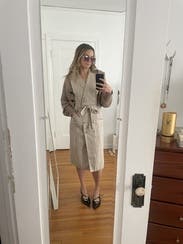 I really wanted to love it but it didn’t flatter as much as I wanted. I felt like the wrinkling ended up looking sloppy. I also chose the wrong shoes, which looked great with the black blazer I started with but ended up taking off. Would look great on someone taller.