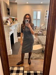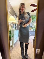Love love loved this dress! Perfect for fall transition (and came with tags on!). Super soft knit material. Fit was so flattering. Great for 50 to 60 degrees out, I would say.